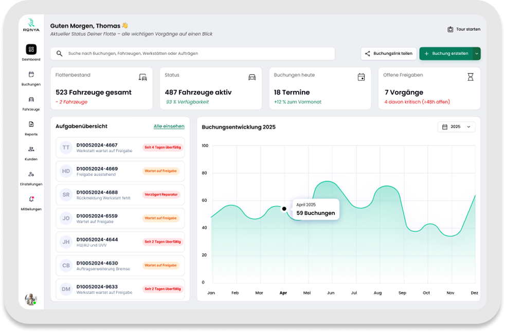 60 Vertriebler fahren verschiedene Modelle. Die dezentrale Wartung bei freien Werkstätten war teuer und intransparent. RONYA SMR schafft einheitliche Prozesse und Konditionen.