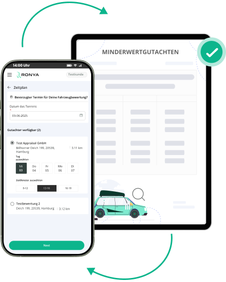 RONYA schlägt Maßnahmen vor und koordiniert notwendige Reparaturen und Aufbereitungen über das Partnernetzwerk. Rechtzeitig und zu Vorzugskonditionen.